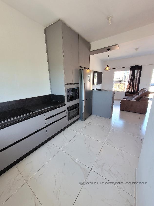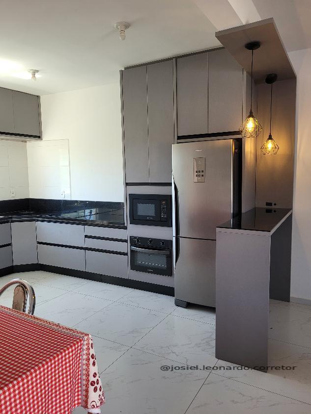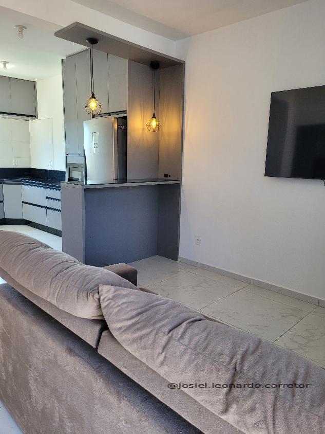 * **Cozinha Americana:** Totalmente planejada, com um design sofisticado (tons de cinza e preto) e bancada de apoio.