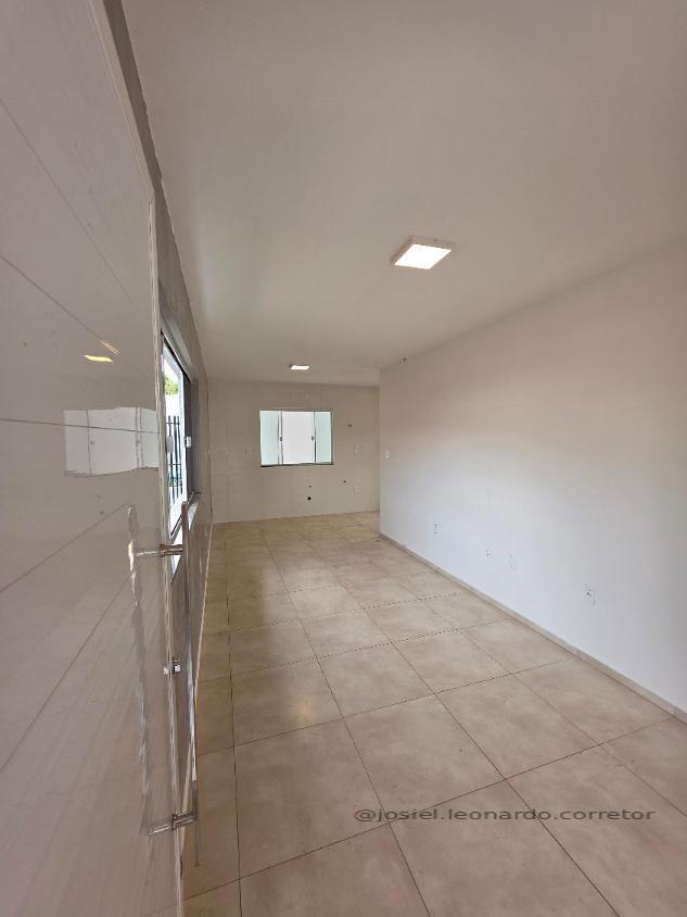 A casa possui estrutura em laje, oferecendo maior conforto térmico e a possibilidade real de ampliação. O layout interno é inteligente, com uma ampla sala integrada para dois ambientes (estar e jantar) que se conecta a uma cozinha funcional e bem iluminada.
